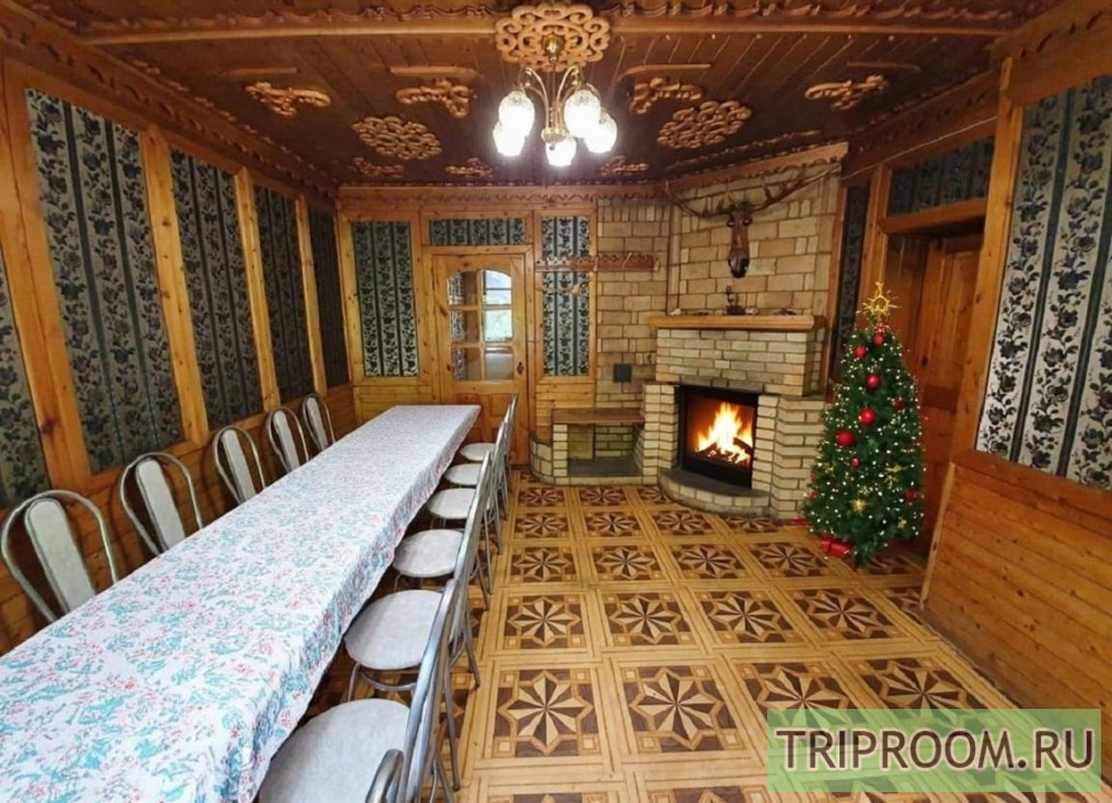 - 1 этаж: Банкетный зал, камин на дровах, два стола, 16 стульев, телевизор плазма. Небольшая комната с магнитофоном. Кухня, 2 сковородки, 3 кастрюли, доски для резки, салатники, куча поварёшек, штопоры, открывашки, ножи. Привозите свои одноразовые тарелки, столовые приборы, кружки и чашки.
